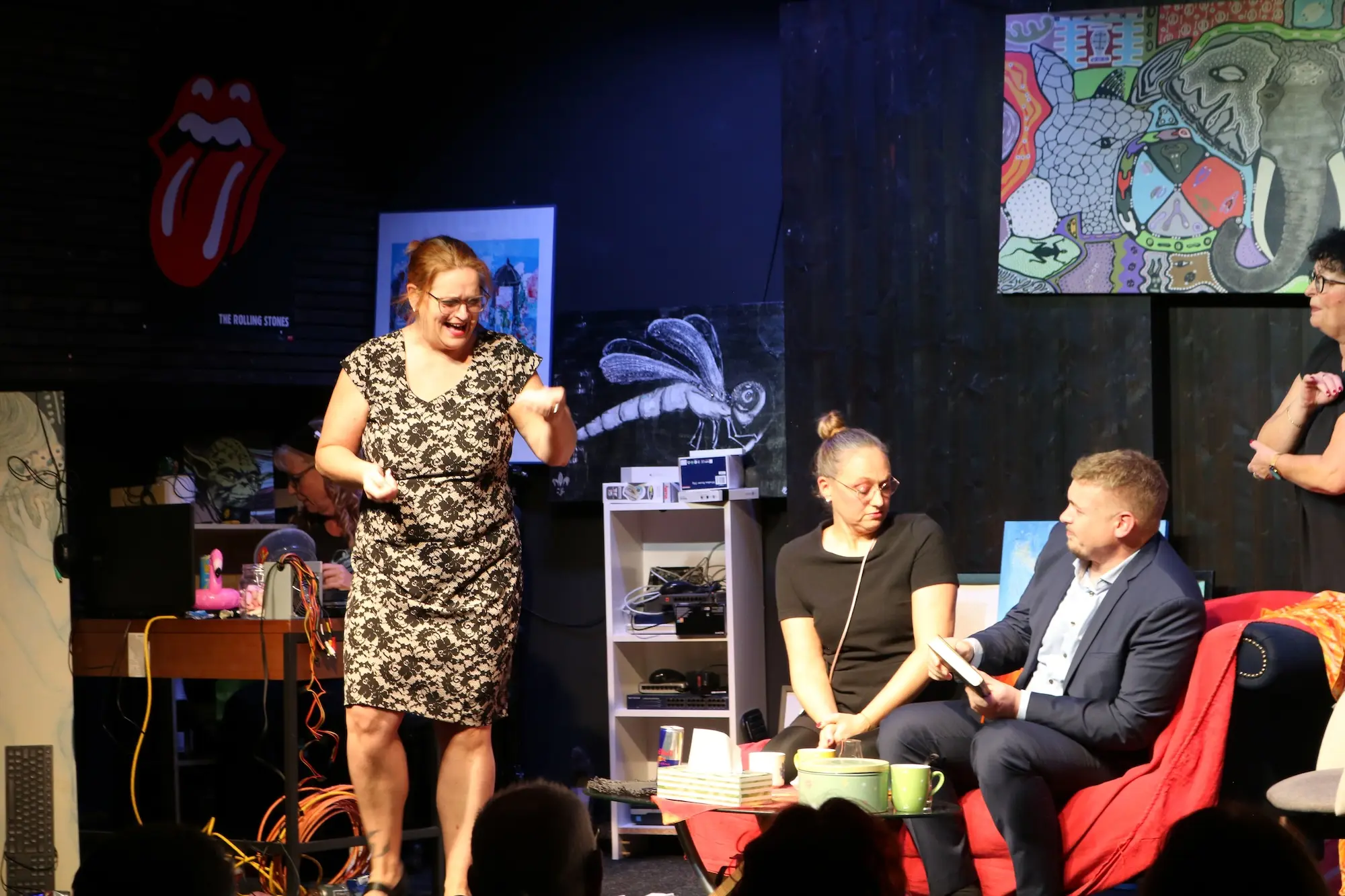 Der Vorsitzende der Landkulturschaffenden führt als Slammaster durch das Programm, mit dabei sind die 3.Vorsitzende Christiane Stork aus Karlsruhe, der 2.Vorsitzende Gusto aus Herxheim sowie die Kassiererin Therese Degen aus Stuttgart.